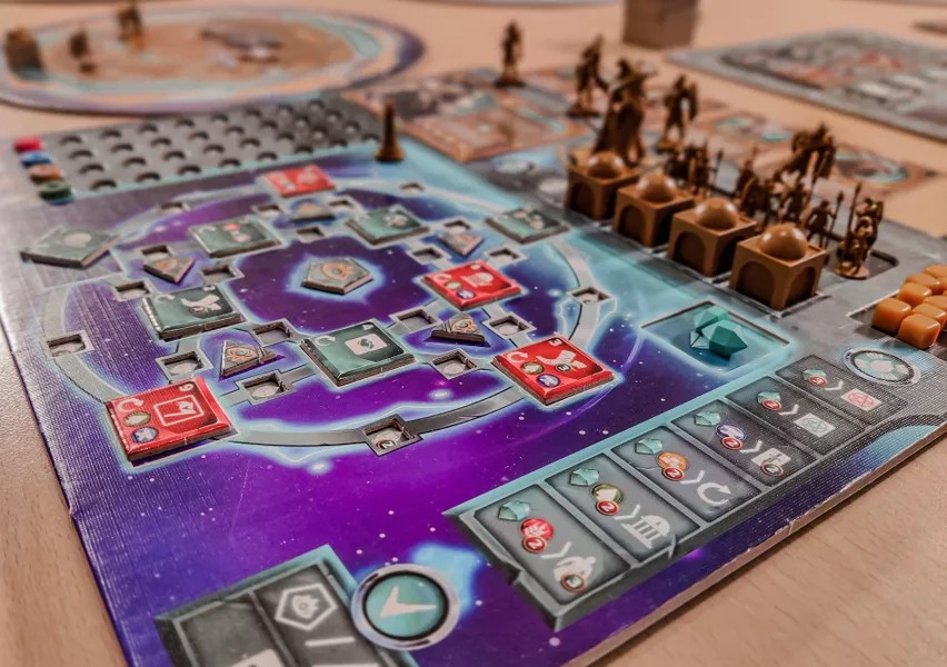In addition to having a strong dose of controllability (the luck factor is minimal), the game features an innovative starred action-selection-system that confronts players with interesting choices: players can reincarnate their gods by performing their actions in a precise sequence, on pre-established paths of their starred player board, or they can give up some deities, jumping freely from one action to another of their board, to choose from time to time the situationally best actions.