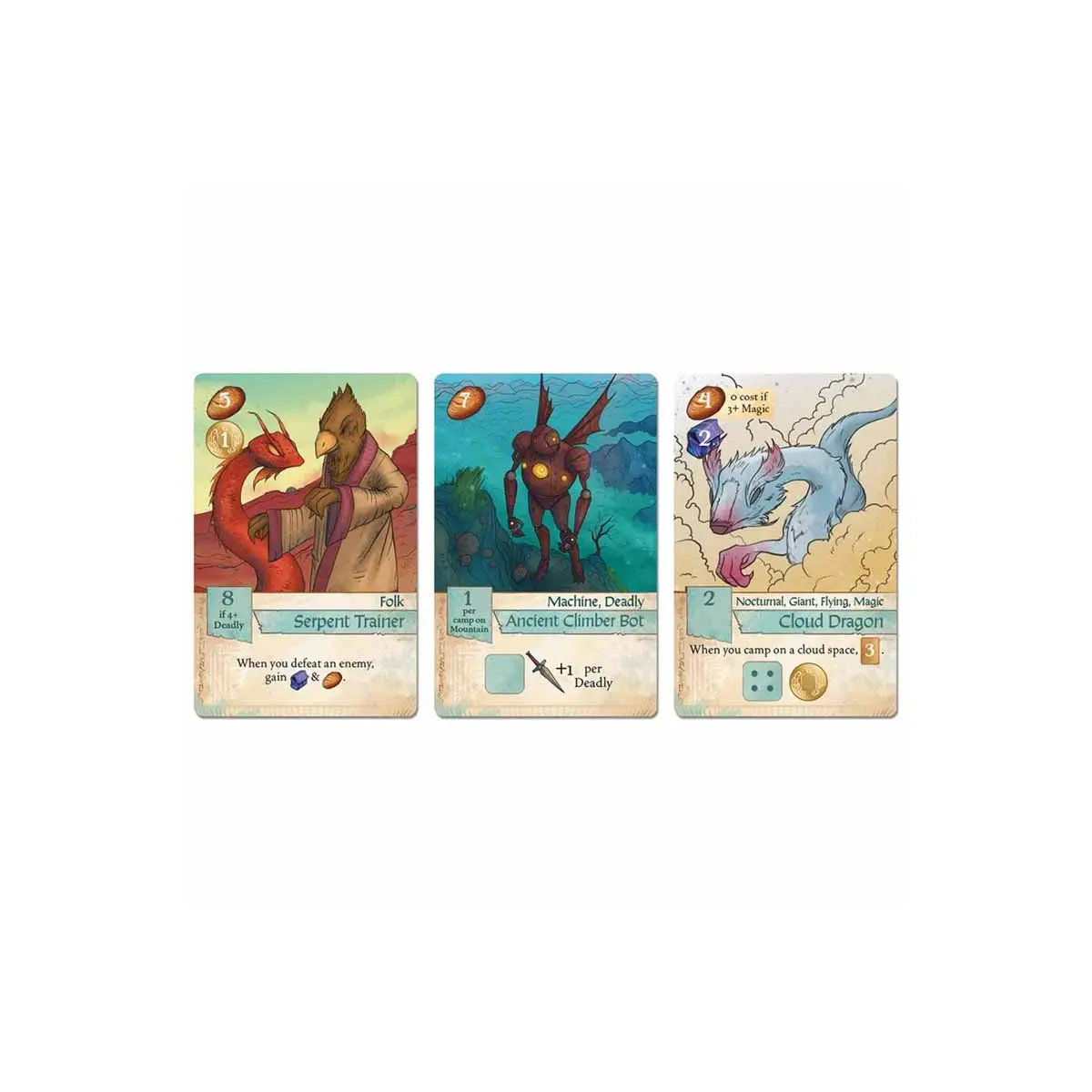 The game includes 134 cards, each with a unique illustration and combination of actions and abilities. Simultaneous gameplay allows one to four players to play together without increasing the game’s length, with the Wanderers expansion (sold separately or comes inside the Deluxe Edition) allowing for up to six players.
