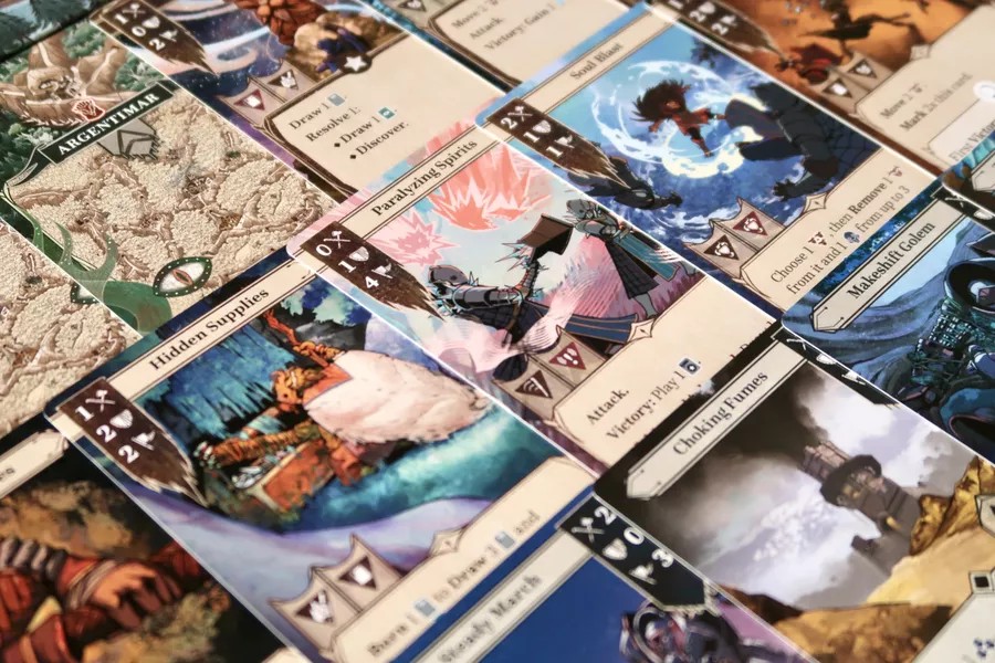 The two factions are completely asymmetric in their play styles, decks, victory conditions – even in which parts of the map they can access.