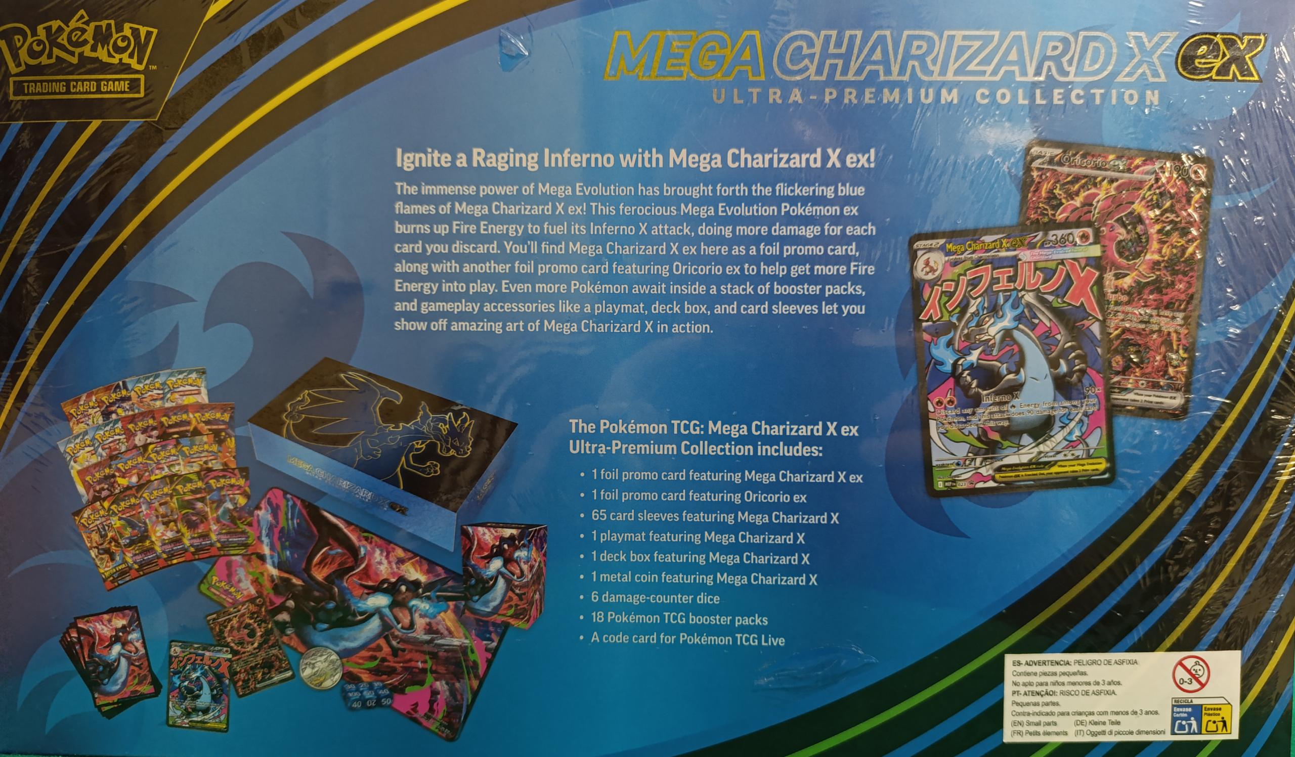 The Pokémon TCG: Mega Charizard X ex Ultra-Premium Collection, esta caixa inclui: