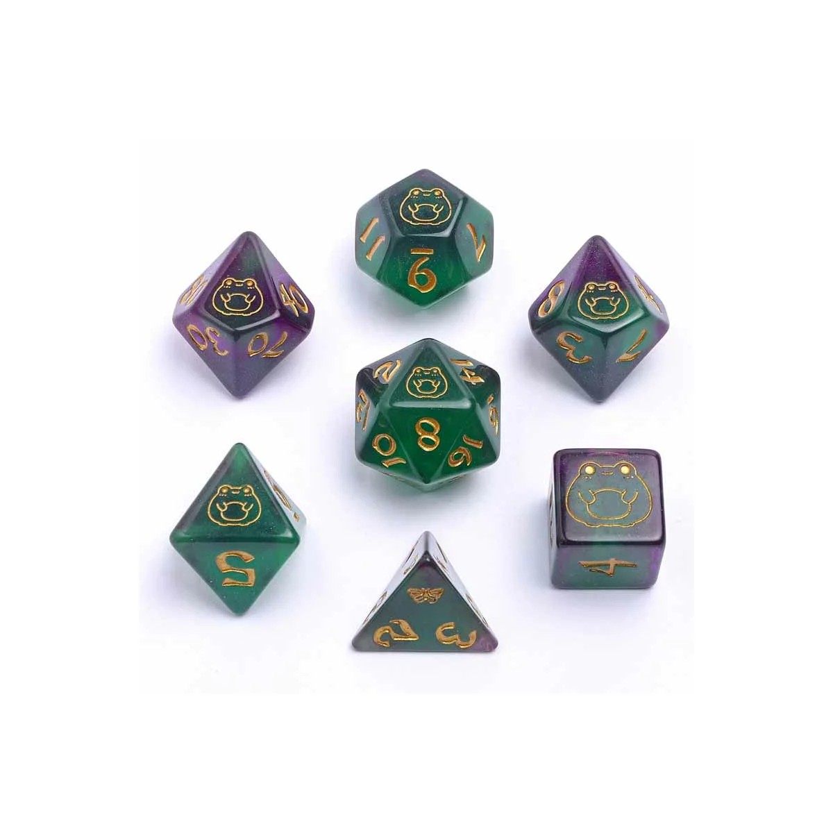 Bog Frog RPG Dice Set Glow in the dark-Gold