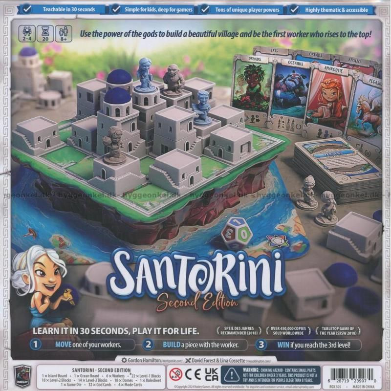 Variable player powers – Santorini features variable player powers layered over an otherwise abstract game, with 40 thematic god and hero powers that fundamentally change the way the game is played.